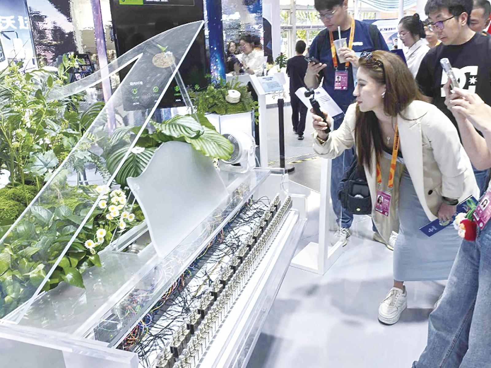 在北京經(jīng)濟技術(shù)開發(fā)區(qū)展區(qū),一臺長滿植物的“鋼琴”琴聲悠揚,彈琴的不是演奏者而是一蓬綠油油的植物。