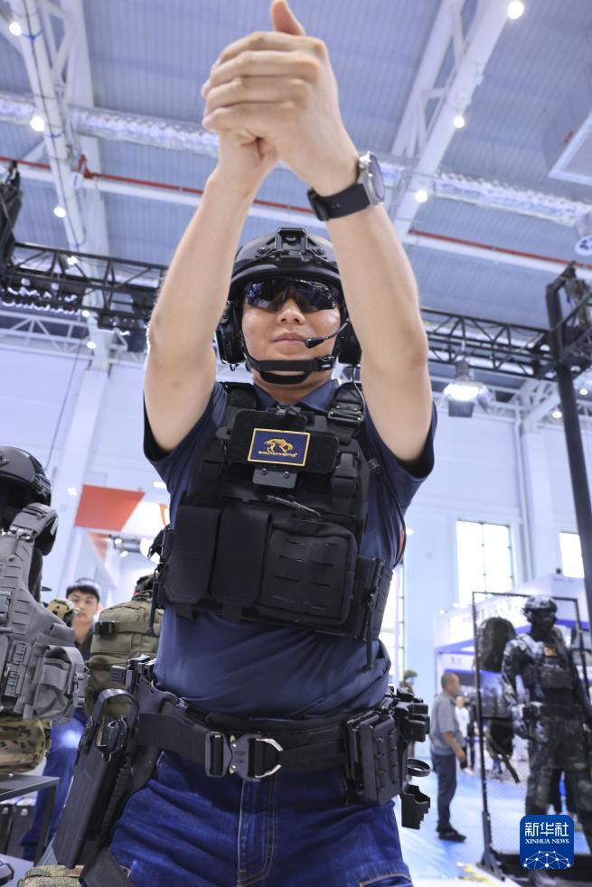 9月16日,在第二屆公共安全科技裝備展現場,工作人員展示新型模塊化作戰背心。