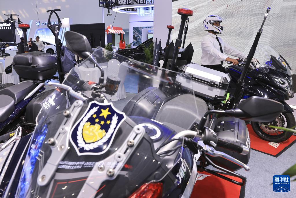 9月16日,在第二屆公共安全科技裝備展現場,工作人員展示警用摩托車。