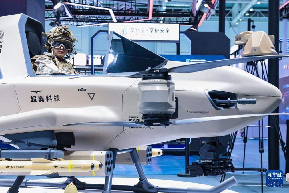 9月16日,在第二屆公共安全科技裝備展現場,工作人員演示武裝電動垂直起降飛行器eVTOL。