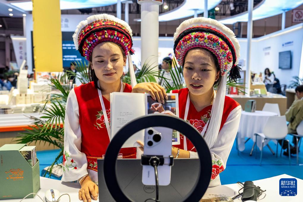 9月17日,參展商在創(chuàng)意云南文化產(chǎn)業(yè)博覽會(huì)上直播推介云南特色書籍。