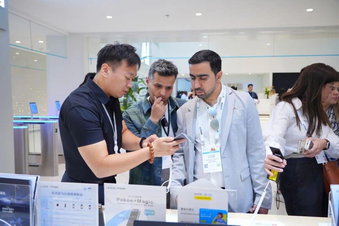 參訪中,訊飛的雙屏翻譯機吸引了代表團的目光,大家爭先嘗試這款新發布的翻譯機,其中還有一位代表更是直接入手了兩臺。
