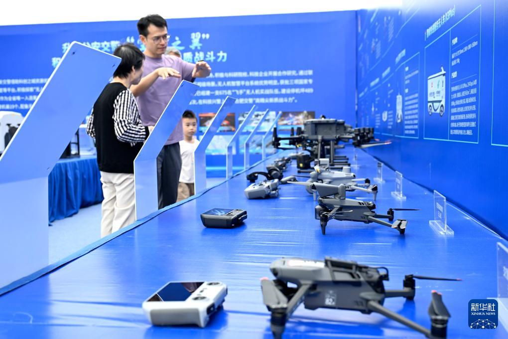 9月21日,觀眾在“全空間無人體系成果展”上參觀合肥交警無人機交通管理裝備體系。