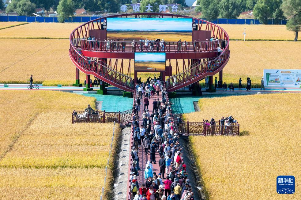 9月23日,2025年中國農民豐收節黑龍江省主場活動在北大荒農墾集團閆家崗農場稻田藝術公園拉開帷幕,人們歡聚一堂,共享一場同耕耘、共歡歌的豐收盛宴。
