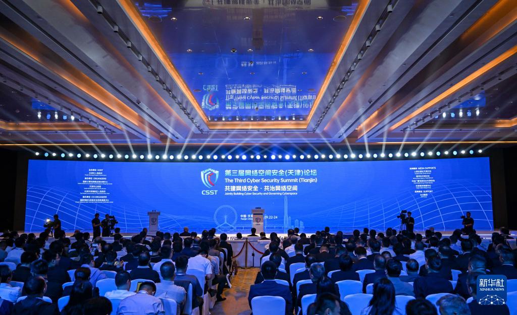 這是9月23日拍攝的第三屆網(wǎng)絡(luò)空間安全(天津)論壇開(kāi)幕式現(xiàn)場(chǎng)。