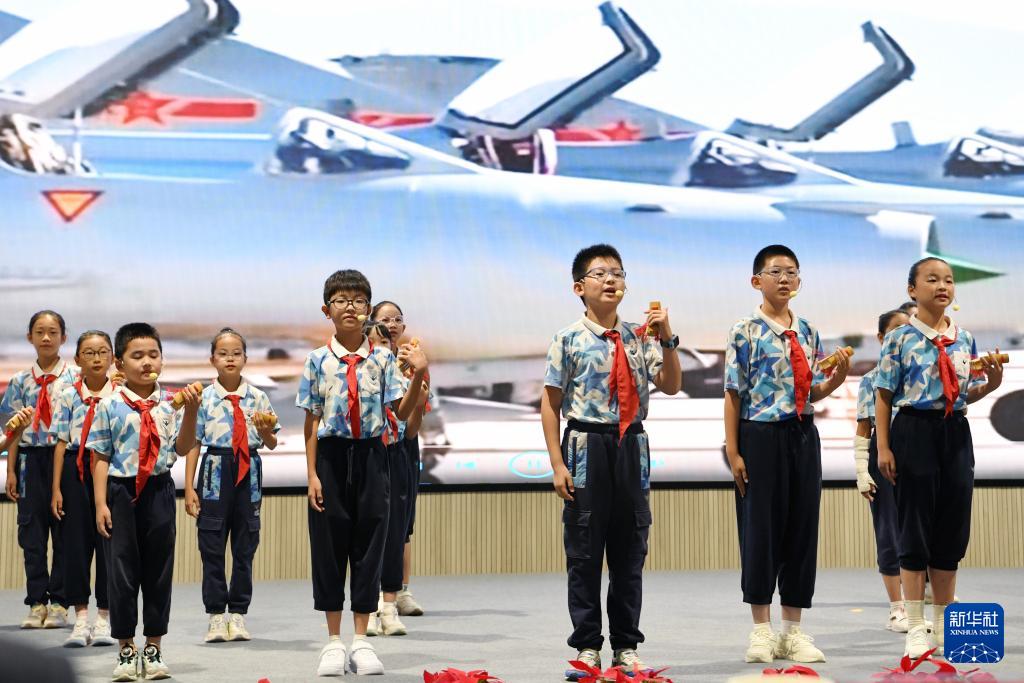 9月24日,北京市第二十中學附屬育鷹小學學生在活動開幕式上表演快板《戰鷹集結》。