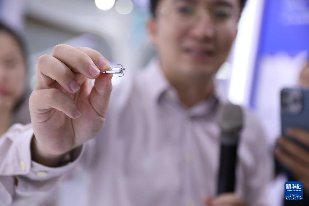 9月24日,工作人員展示“經導管植入式無導線起搏系統”,這是全球最小的心臟起搏器。
