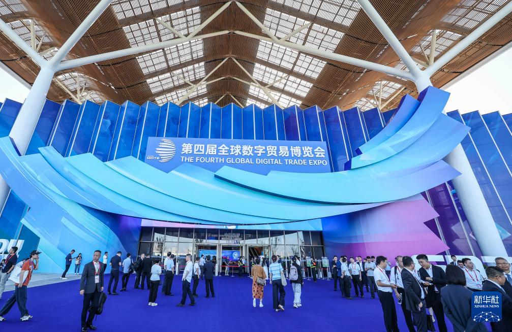 這是9月25日拍攝的第四屆全球數(shù)字貿(mào)易博覽會(huì)啟動(dòng)儀式現(xiàn)場。