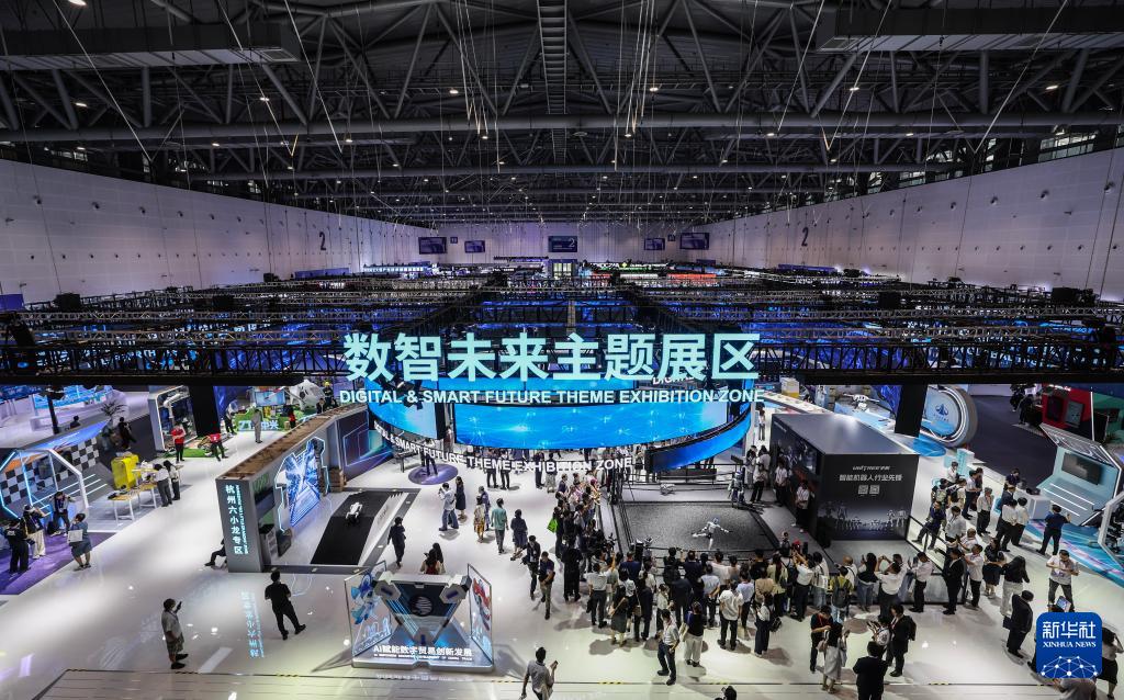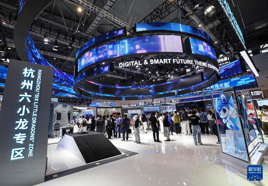 這是9月25日拍攝的第四屆全球數(shù)字貿(mào)易博覽會(huì)數(shù)智未來主題展區(qū)的杭州六小龍專區(qū)。