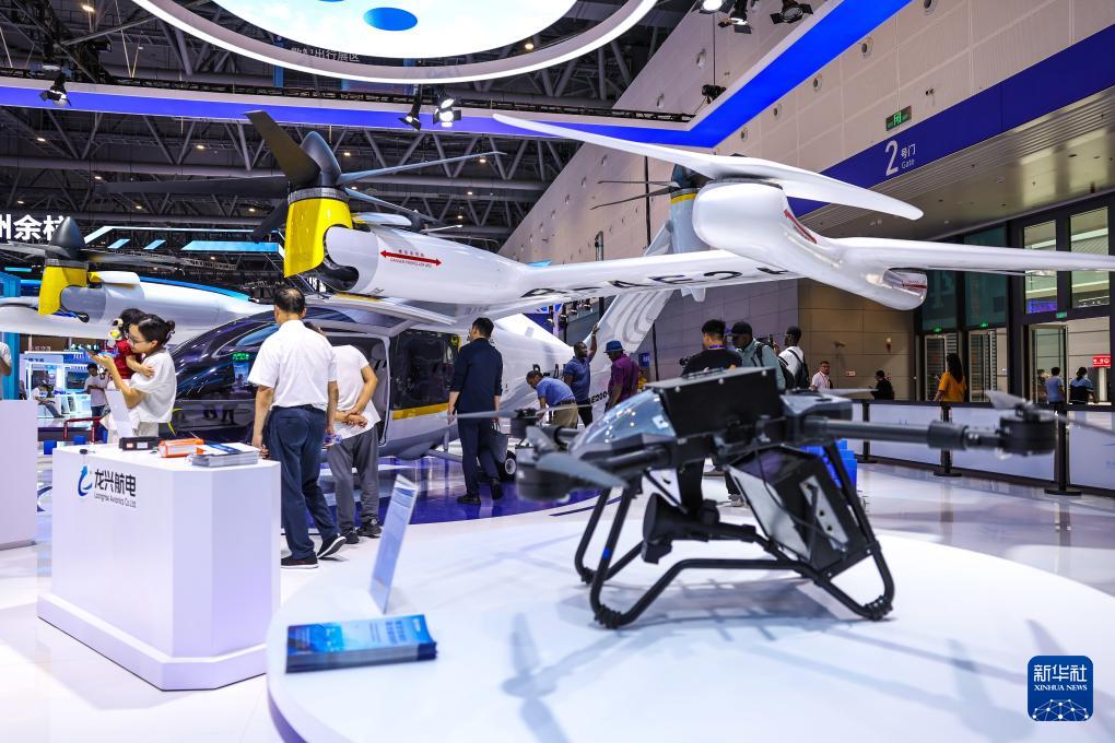 9月25日,觀眾在第四屆全球數(shù)字貿(mào)易博覽會(huì)數(shù)智出行展區(qū)參觀無人機(jī)。