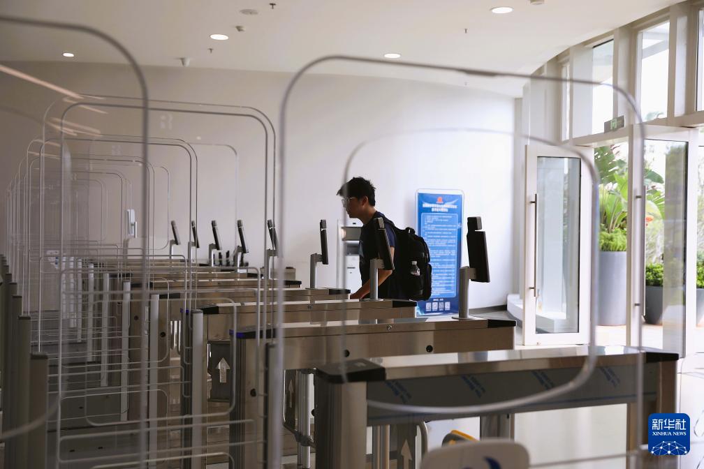 9月25日,一名學生走進海南陵水黎安國際教育創新試驗區的圖書館。該館門禁采用無感借閱系統,可通過人臉識別關聯學生名下借閱的書目情況。