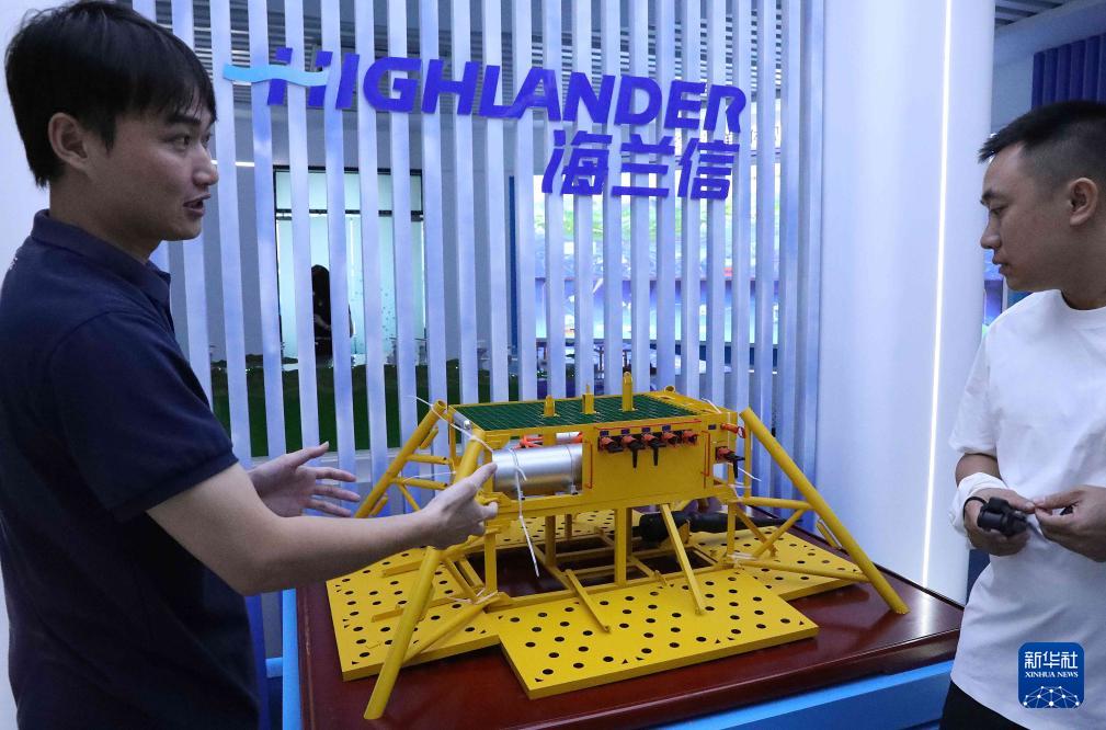 9月25日,參觀者近距離觀看海南海底數據中心的海底數據艙微縮實景模型。