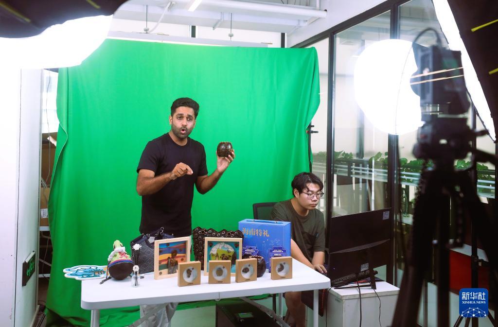 9月22日,在海南省海口市復興城互聯網信息產業園,一名來自巴基斯坦的主播在直播間進行直播帶貨。