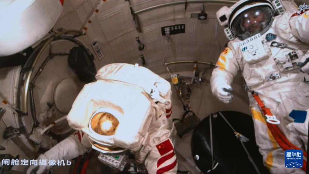 這是9月25日晚在北京航天飛行控制中心屏幕上拍攝的神舟二十號(hào)乘組航天員王杰出艙的畫(huà)面。