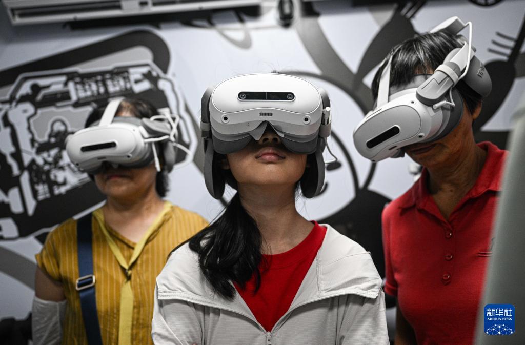 10月7日,游客在文昌航天科普中心進(jìn)行MR星際穿越體驗(yàn)。