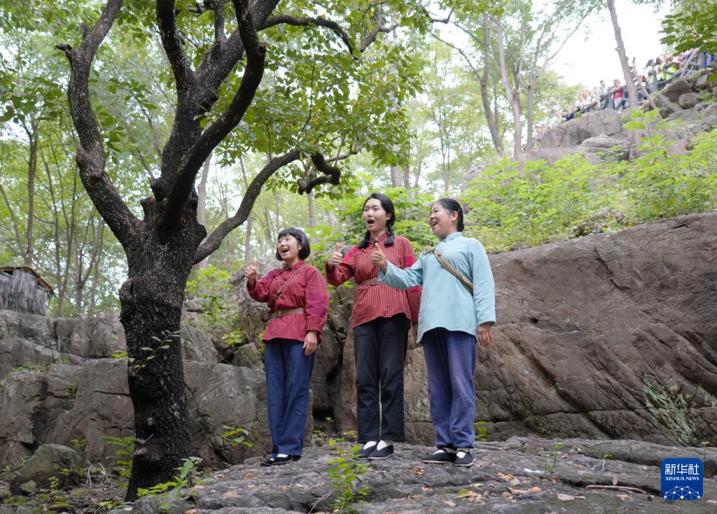 10月3日在位于山東省臨沂市沂南縣的山東紅嫂家鄉(xiāng)旅游區(qū)拍攝的沉浸式體驗(yàn)項(xiàng)目《重走支前路》中的一個(gè)環(huán)節(jié)。