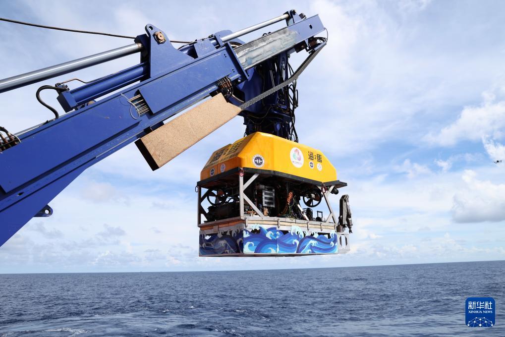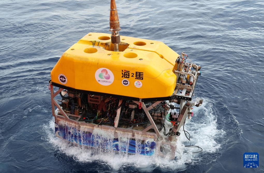 “海洋地質(zhì)二號(hào)”科考船搭載“海馬”號(hào)深海遙控潛水器在南海北部進(jìn)行“源火”采集(9月18日攝)。