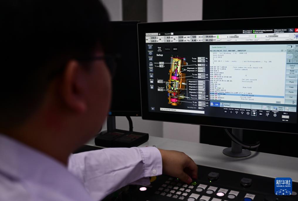 10月13日,科研人員在聚變堆主機(jī)關(guān)鍵系統(tǒng)綜合研究設(shè)施“夸父”(CRAFT)偏濾器原型部件測(cè)試現(xiàn)場(chǎng)工作。
