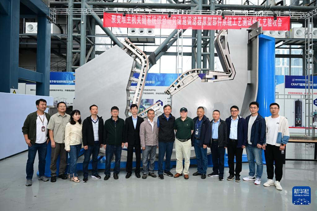 10月13日,專家組和科研團(tuán)隊(duì)在聚變堆主機(jī)關(guān)鍵系統(tǒng)綜合研究設(shè)施“夸父”(CRAFT)偏濾器原型部件測(cè)試現(xiàn)場(chǎng)合影。