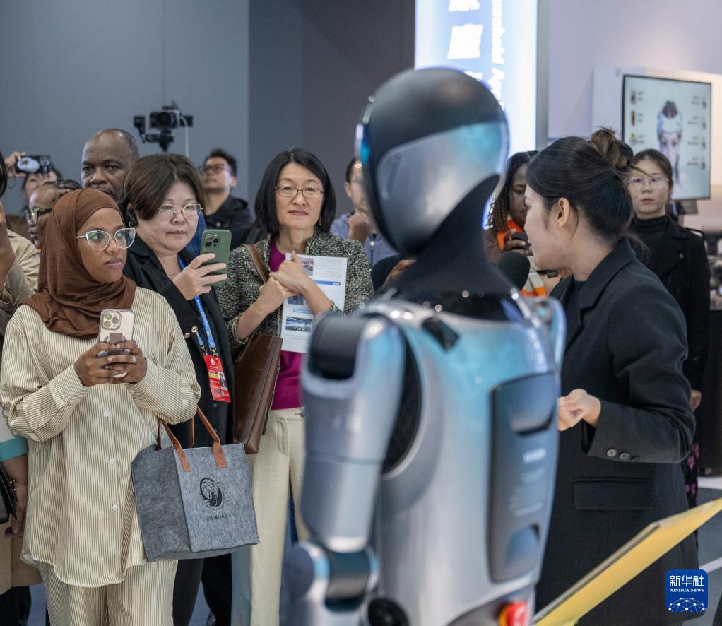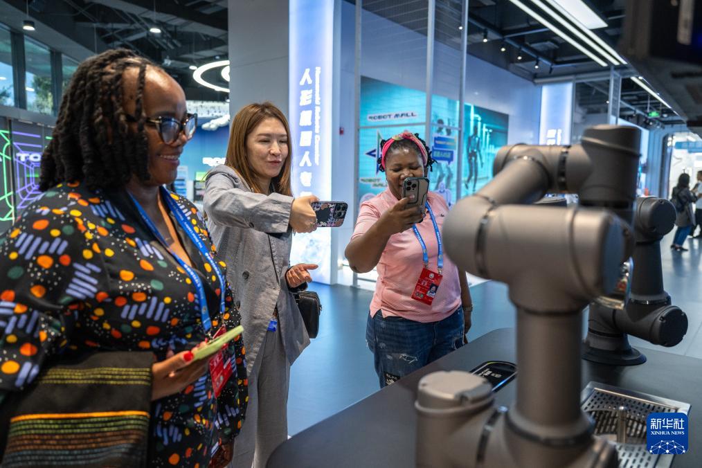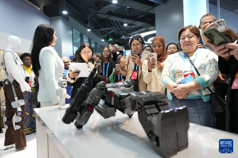 10月14日,全球婦女峰會參會嘉賓在北京經開區機器人大世界參觀。
