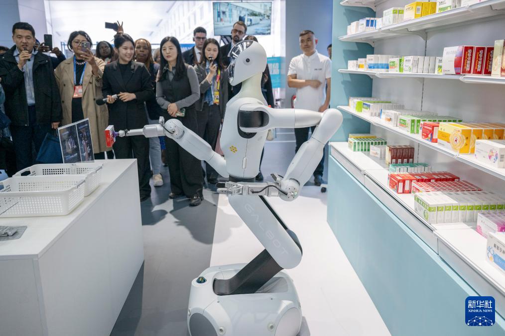 10月14日,嘉賓在北京經開區機器人大世界觀看機器人拿取藥品。