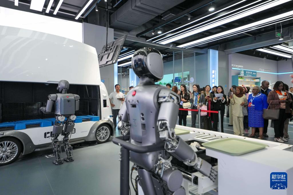 10月14日,嘉賓在北京經開區機器人大世界觀看機器人演示。