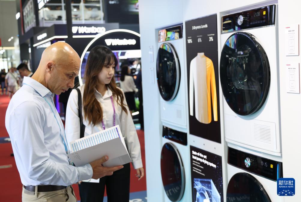 10月15日,客商在廣交會上咨詢了解智能洗衣機。