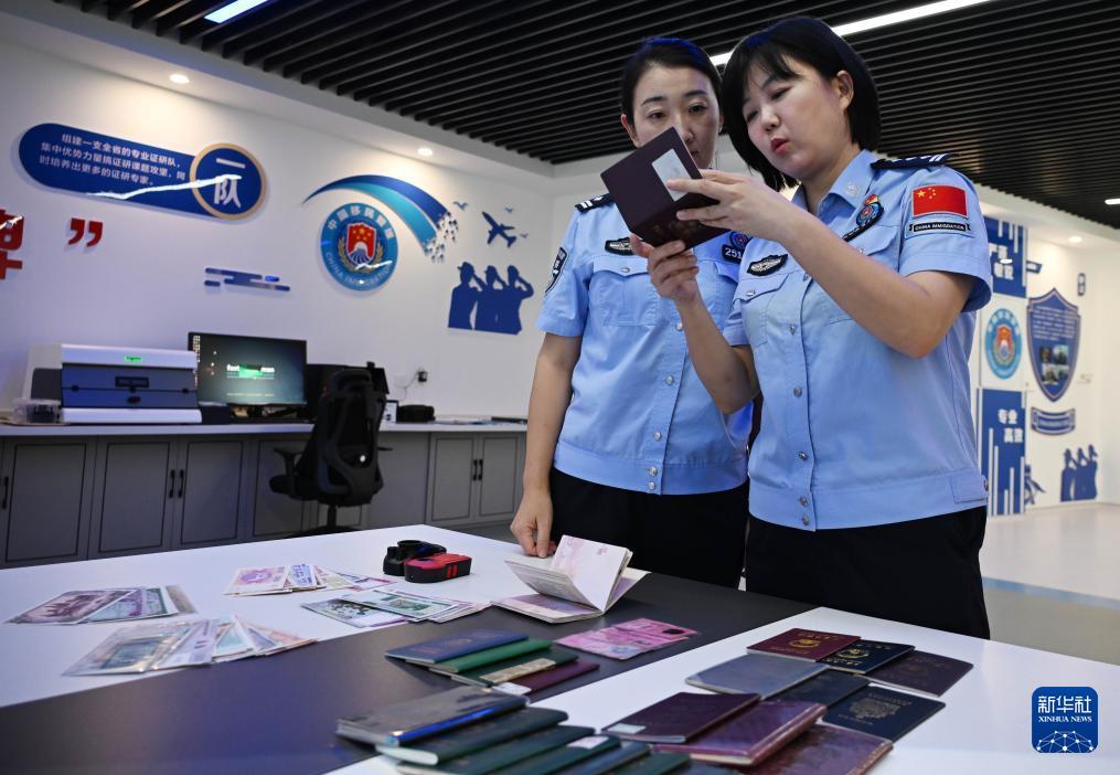 這是10月14日拍攝的青島機場邊檢站證研室。這里收集存放了大量護照樣本供隨時查閱對比。