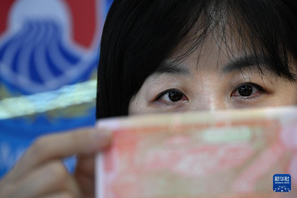 10月14日,移民管理警察曹銳在進行票據真偽識別。