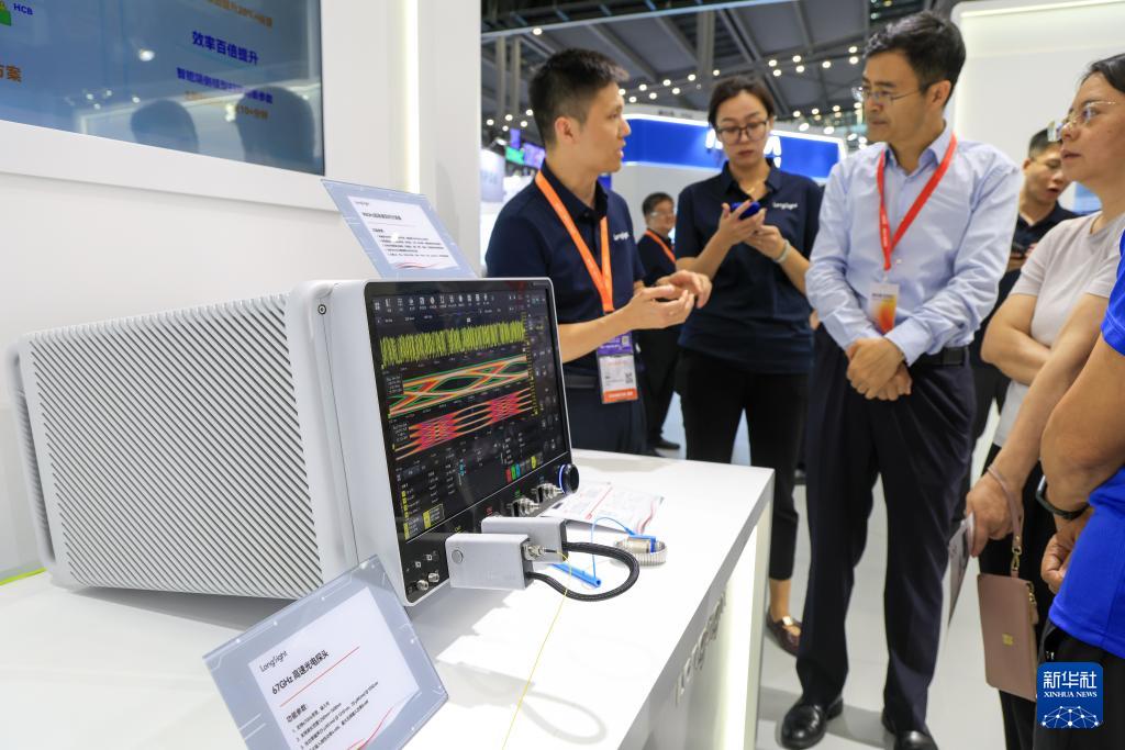 10月15日,參觀者在萬里眼公司展臺了解新一代超高速實時示波器。