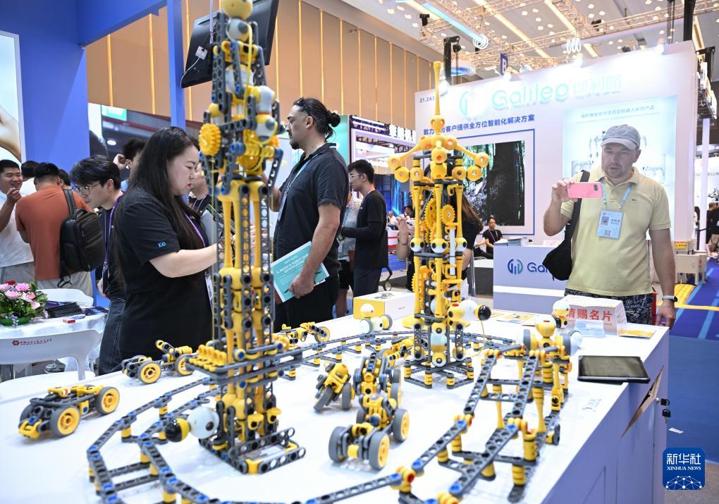 10月15日,境外采購(gòu)商在第138屆廣交會(huì)服務(wù)機(jī)器人專區(qū)觀看教育機(jī)器人產(chǎn)品。