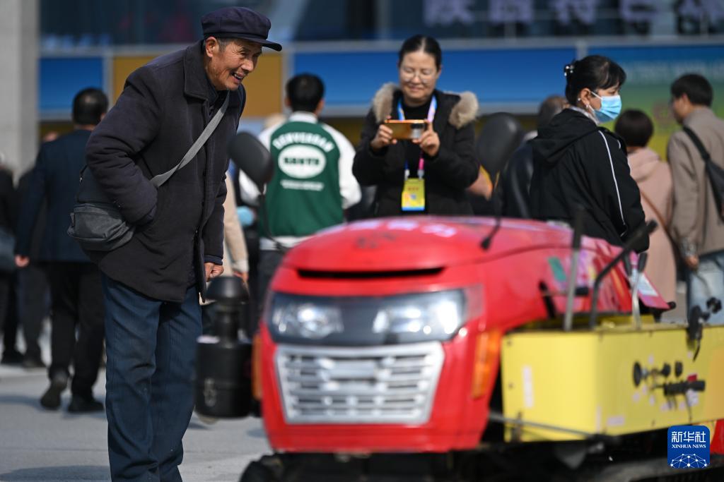 10月26日,參觀者在第32屆楊凌農高會上了解魯力農機的履帶自走式多功能微耕機。