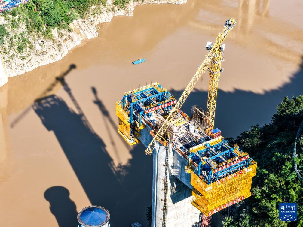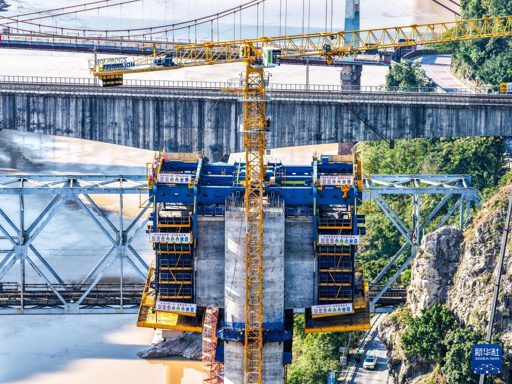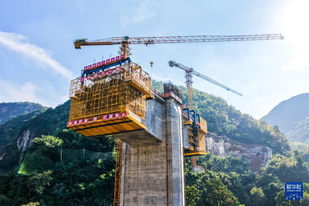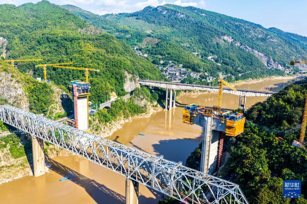 這是10月28日拍攝的西渝高鐵嘉陵江特大橋建設現(xiàn)場(無人機照片)。