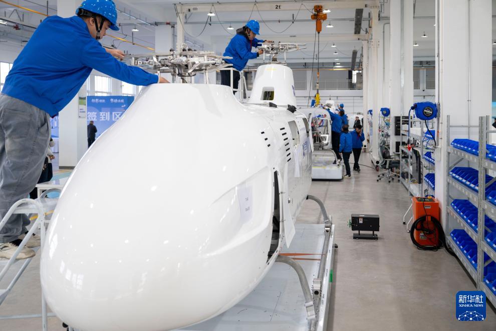 10月30日,在哈爾濱市平房區的哈爾濱聯合飛機科技有限公司生產廠區,工作人員裝配T1400無人直升機。