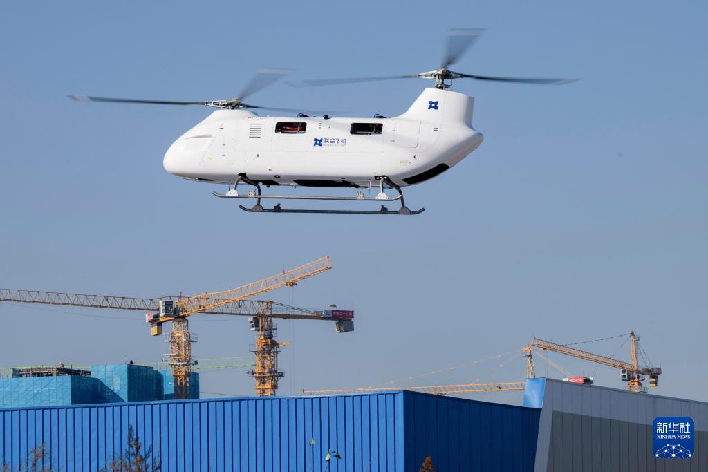 10月30日,在哈爾濱市平房區的哈爾濱聯合飛機科技有限公司,T1400無人直升機在飛行中。