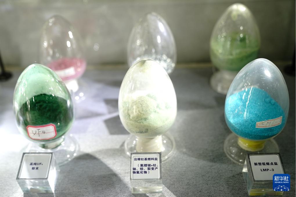 10月24日在中國科學(xué)院上海應(yīng)用物理研究所武威園區(qū)展示廳拍攝的釷基熔鹽堆燃料的關(guān)鍵組分。
