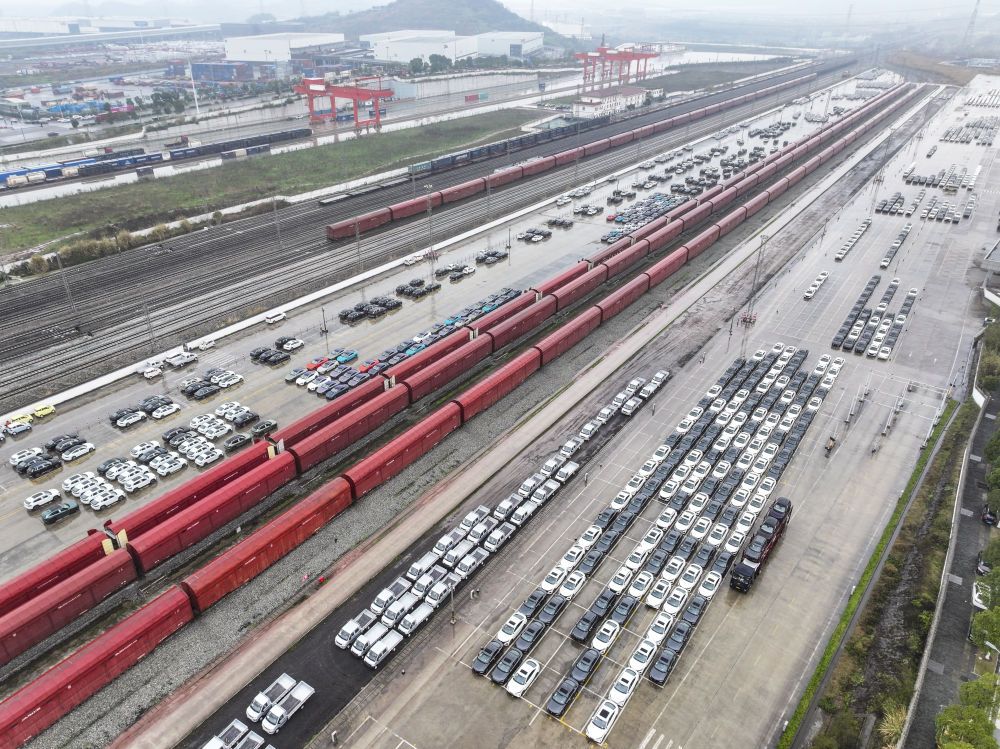 在重慶,一輛輛新能源汽車整裝出發,搭乘中歐班列駛向德國杜伊斯堡;在河南鄭州,手機、平板電腦等電子產品,經中歐班列抵達荷蘭鹿特丹;在浙江義烏,裝滿玩具、家居用品的中歐班列駛向西班牙馬德里……