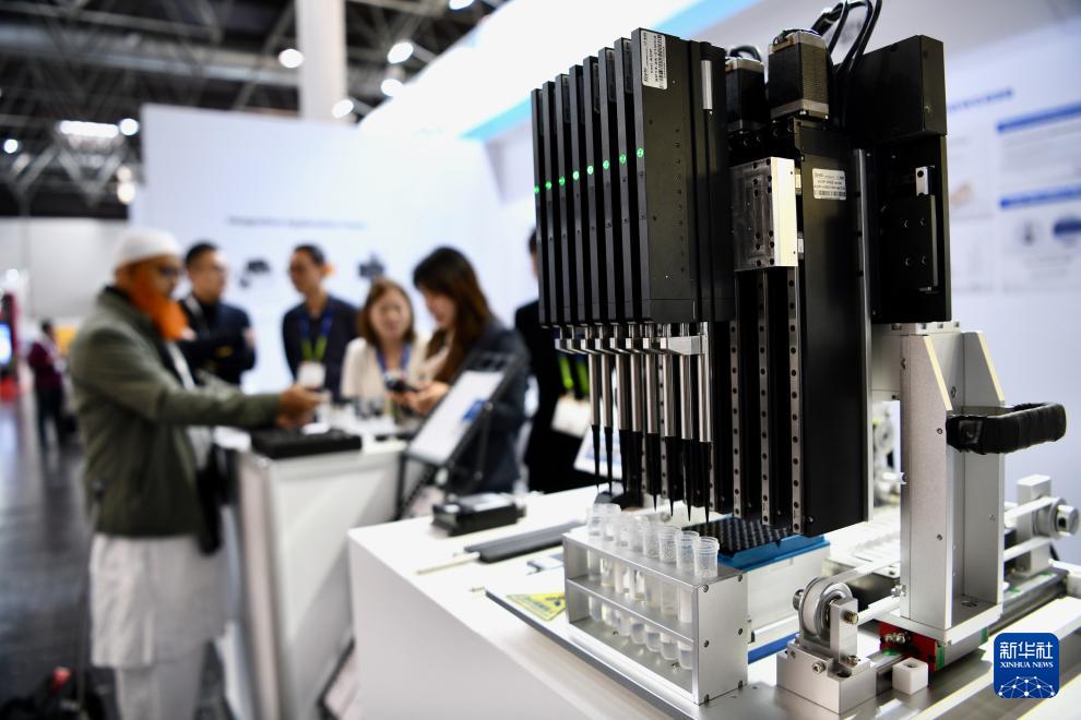 這是11月17日在德國杜塞爾多夫國際醫療器械設備展上拍攝的自動移液器。