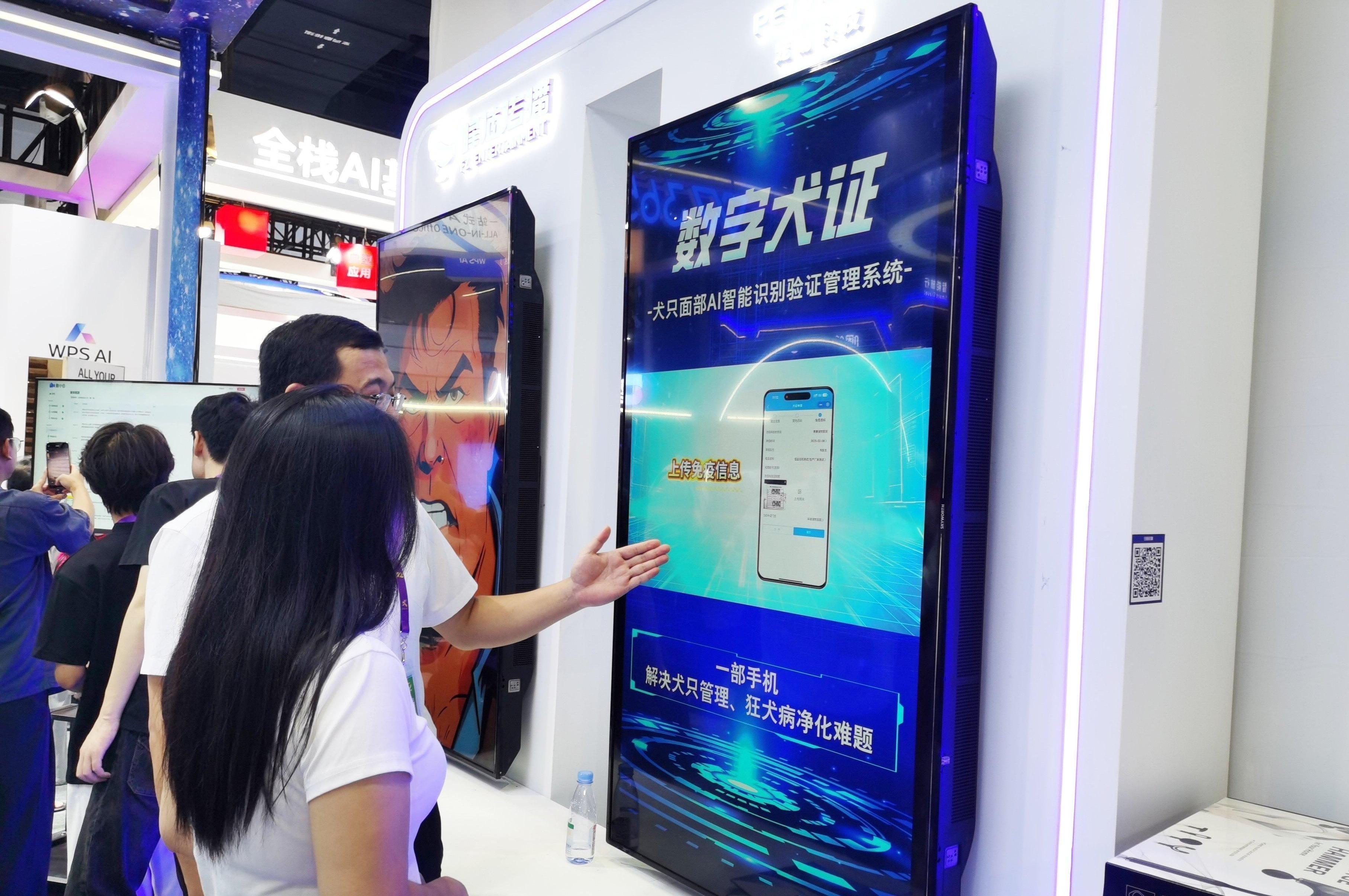 “想知道一條小狗有沒有合法‘身份’、打沒打疫苗,現在掃一下就行。”在東博會人工智能專館的“數字犬證”展臺前,工作人員一邊演示,一邊向參觀者介紹。