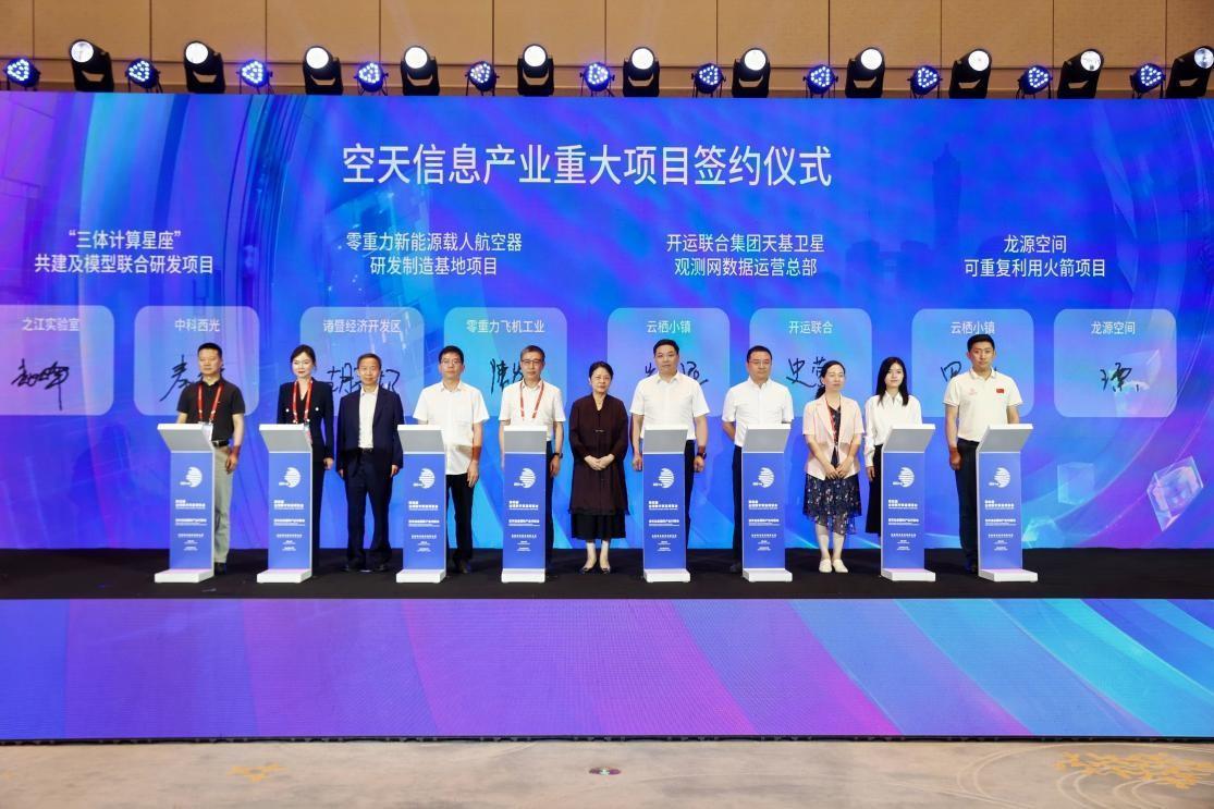 項目簽約環節,云棲小鎮分別與浙江龍源空間科技有限公司、北京開運聯合信息技術集團簽訂可重復利用項目和天基衛星觀測網數據運營總部共建項目;之江實驗室與西安中科西光航天科技有限公司簽約共建“三體計算星座”及模型聯合研發項目;諸暨經濟開發區與零重力飛機工業公司合作建設新能源載人航空器研發制造基地,投資金額50億元。據介紹,這些重大項目的落地,將進一步豐富浙江空天信息產業生態,形成從衛星研制、發射測控到數據應用的完整產業鏈。