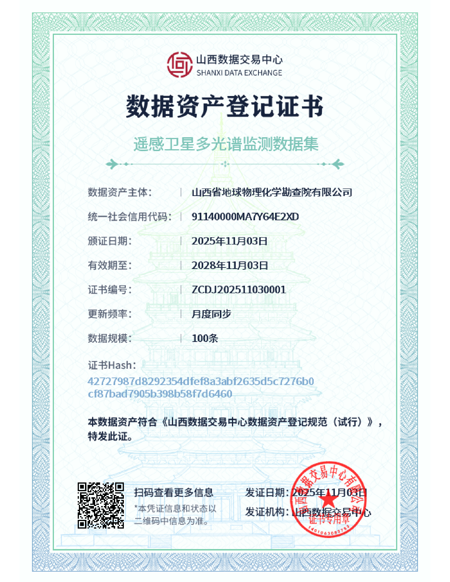 11月9日,記者從山西數據交易中心獲悉,山西省地球物理化學勘查院有限公司研發的“遙感衛星多光譜監測數據集”,在該交易中心完成數據資產登記,并正式獲頒登記證書。山西數據交易中心有關負責人表示:“這是我國衛星遙感數據領域的首例登記,標志著我國在遙感衛星數據資源化融合應用方面取得實質性突破,為數據要素市場化發展提供了可復制的實踐樣本。”