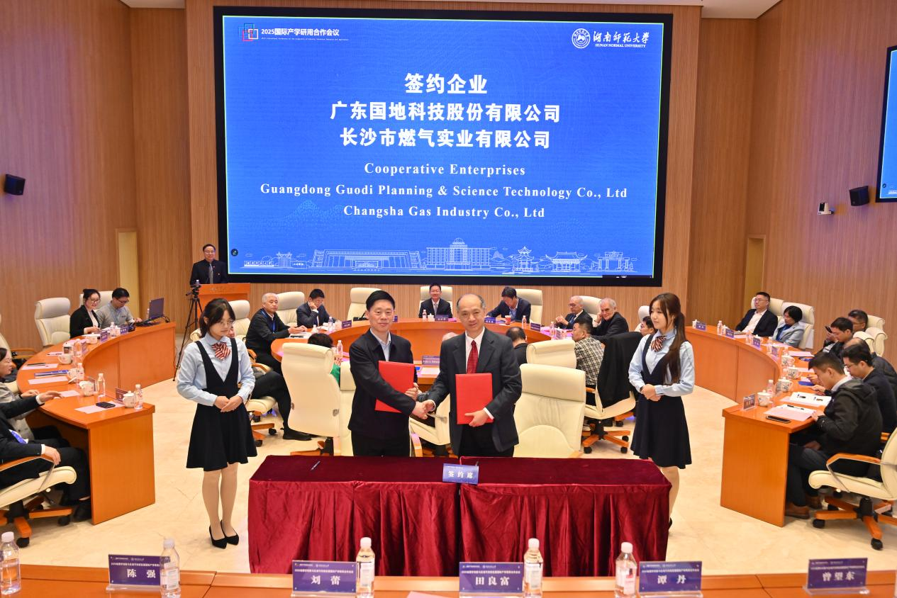 11月15-17日,2025地理學創新與區域可持續發展國際產學研用合作會議在湖南省長沙市舉行。來自南非、德國、英國等十余個國家,以及北京大學等國內高校和科研院所的專家學者與企業代表參會。會上,湖南師范大學分別與廣東國地科技股份有限公司、長沙市燃氣實業有限公司簽署項目合作協議。