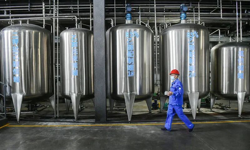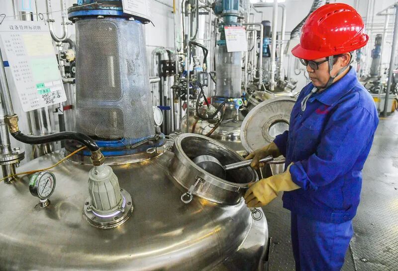 10月13日,在新疆天山制藥工業有限公司車間,工作人員正在生產甘草次酸。在這個生產過程中會產生酸性廢水,以往這些廢水只能排放無法利用,但企業經過工藝改造,探索出“甘草酸粉含酸廢水制造低含量甘草膏”的專利技術,通過調整pH值、濃縮和美拉德反應等步驟,將酸性廢水轉化為可用于出口的低含量甘草膏,實現了變廢為寶,從源頭減少污水排放。