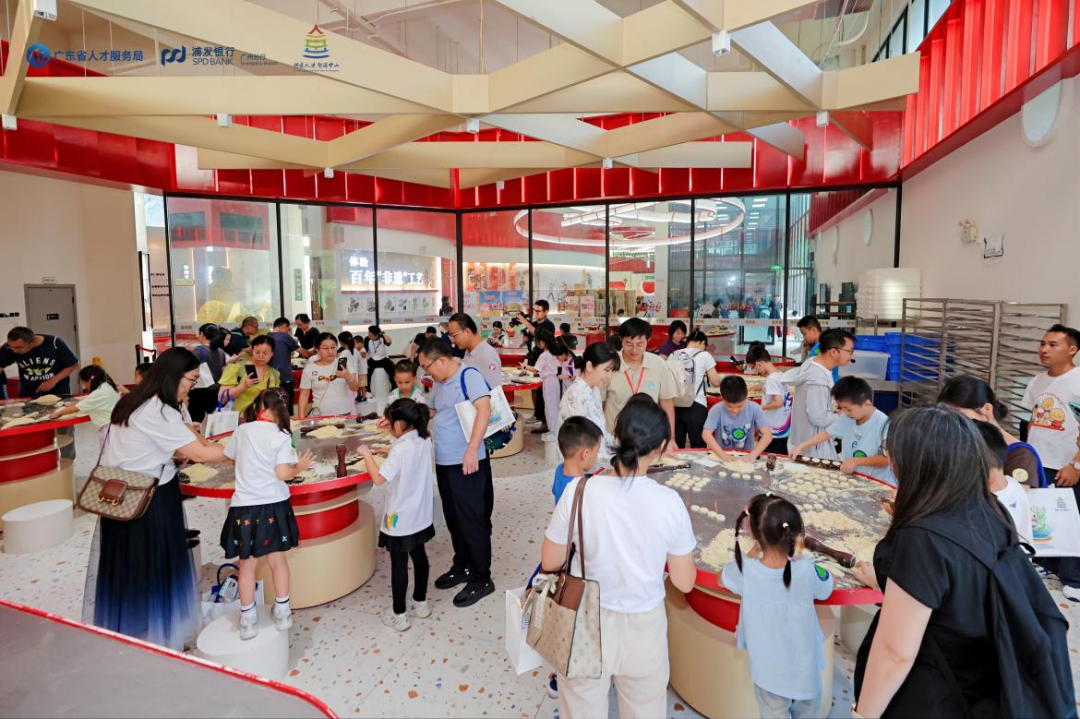 在咀香園餅文化博覽館內,省級非遺技藝的百年傳承通過老物件陳列、手工體驗等形式生動呈現,讓人才家庭通過參觀現代化生產手段,了解到科技賦予“傳統”的新式生命力。在體驗環節,人才家長與孩子共同揉搓餅胚、壓模成型,在一片歡聲笑語中,領悟“舌尖上的非遺”背后精益求精的工匠精神。