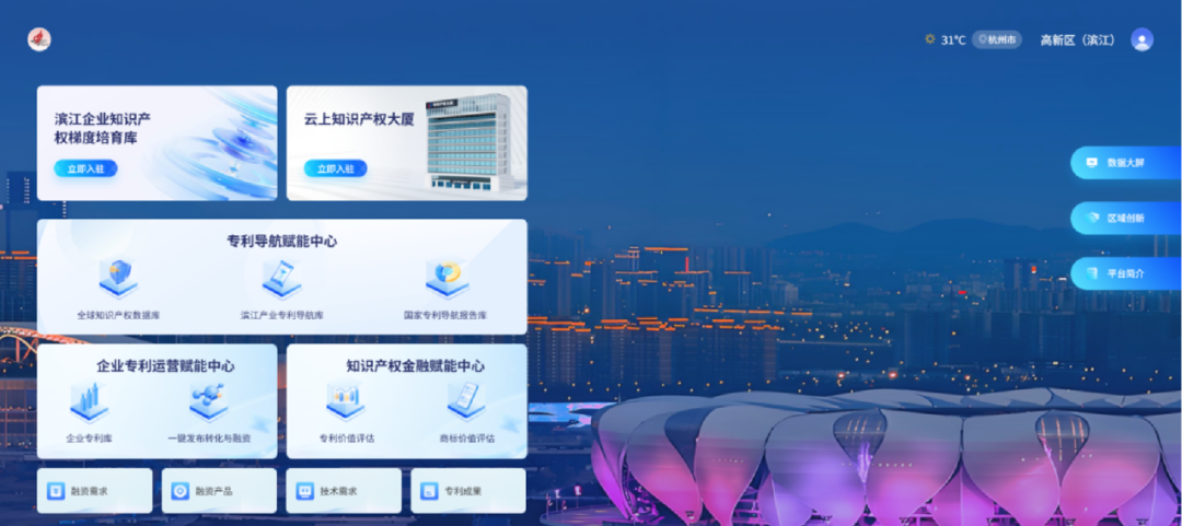 平臺智慧賦能。搭建AI智能服務平臺,集成“專利導航”“企業專利運營”“知識產權金融”三大賦能中心,實現專利智能匹配、價值評估和金融產品在線對接,目前已上線61款知識產權金融產品。