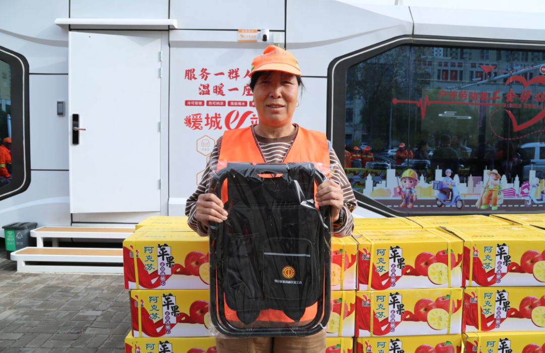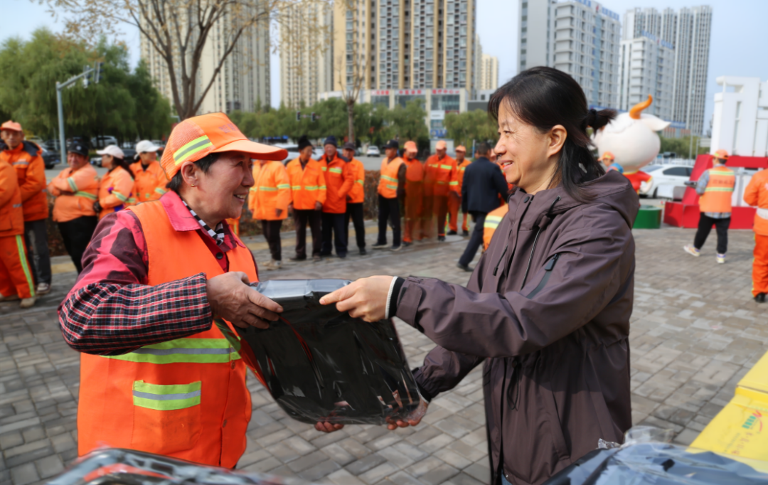 劉永紅對環(huán)衛(wèi)工人常年如一日,不畏嚴寒酷暑,堅守崗位,用自己的汗水和勤勞守護城市的整潔與美麗表示感謝,并叮囑大家在戶外作業(yè)時要做好保暖和安全防護,希望大家繼續(xù)發(fā)揚奉獻精神,再接再厲,為城市環(huán)境的干凈整潔作出新的貢獻。隨后,參加活動的領(lǐng)導(dǎo)為現(xiàn)場的每一位環(huán)衛(wèi)工人送上戶外多功能折疊凳和一箱蘋果,方便他們在工作間隙休息,平平安安回家。