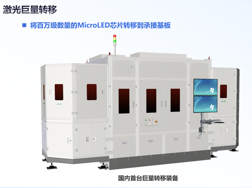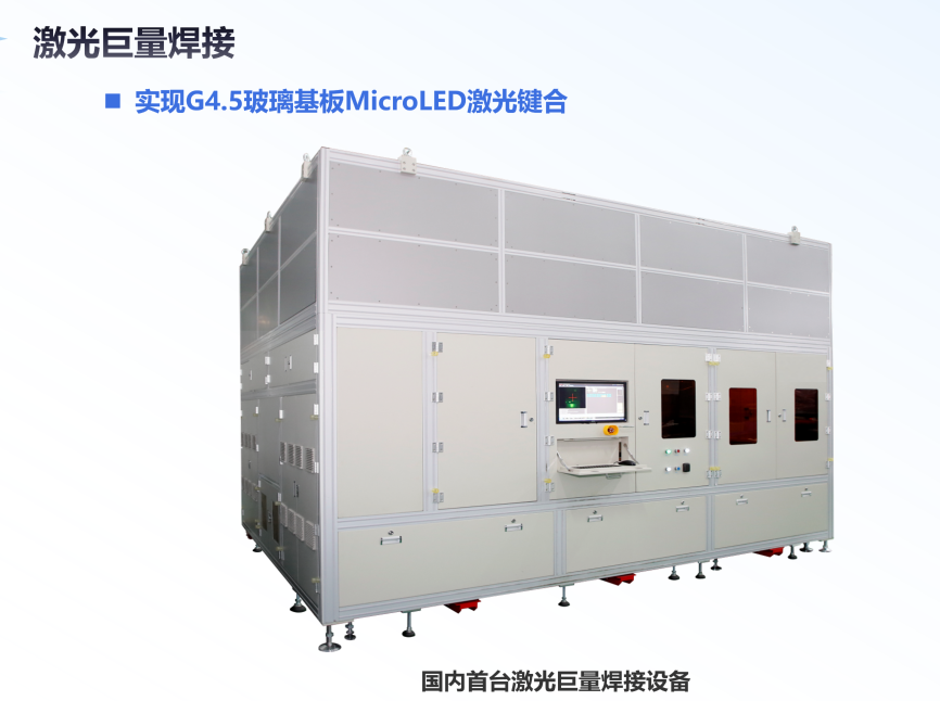 通過技術(shù)創(chuàng)新有效解決巨量轉(zhuǎn)移過程中的波長一致性、精度與良率兼容問題,并成功突破G4.5玻璃基大幅面焊接問題等痛點(diǎn)和難點(diǎn)。