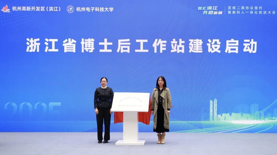 會上,舉行了區校二期合作協議簽約、浙江省人工智能學院科創中心揭牌、浙江省博士后工作站建設啟動和頒獎儀式,學校有關負責人介紹了杭電濱江研究院和浙江省人工智能學院相關情況。