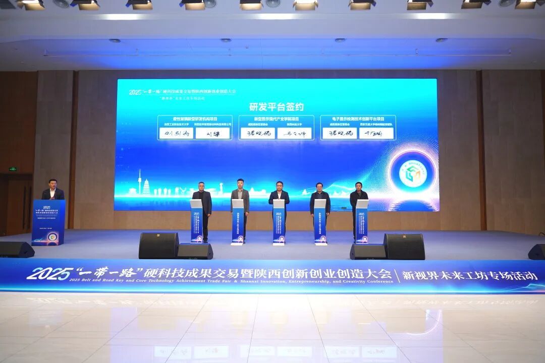 11月6日,2025“一帶一路”硬科技成果交易暨陜西創新創業創造大會“新視界”未來工坊專場活動在咸陽高新區成功舉辦。陜西省發展改革委二級巡視員馬宏生,科技處處長安軍,咸陽市委常委、常務副市長王宏兵,咸陽市發展改革委主任李俊英,咸陽市科技局局長楊沖鋒出席,咸陽高新區黨工委副書記、管委會主任崔巍主持。陜西科技大學、陜西工業職業技術大學等高校老師,彩虹股份、京東方等170余戶企業參加活動。