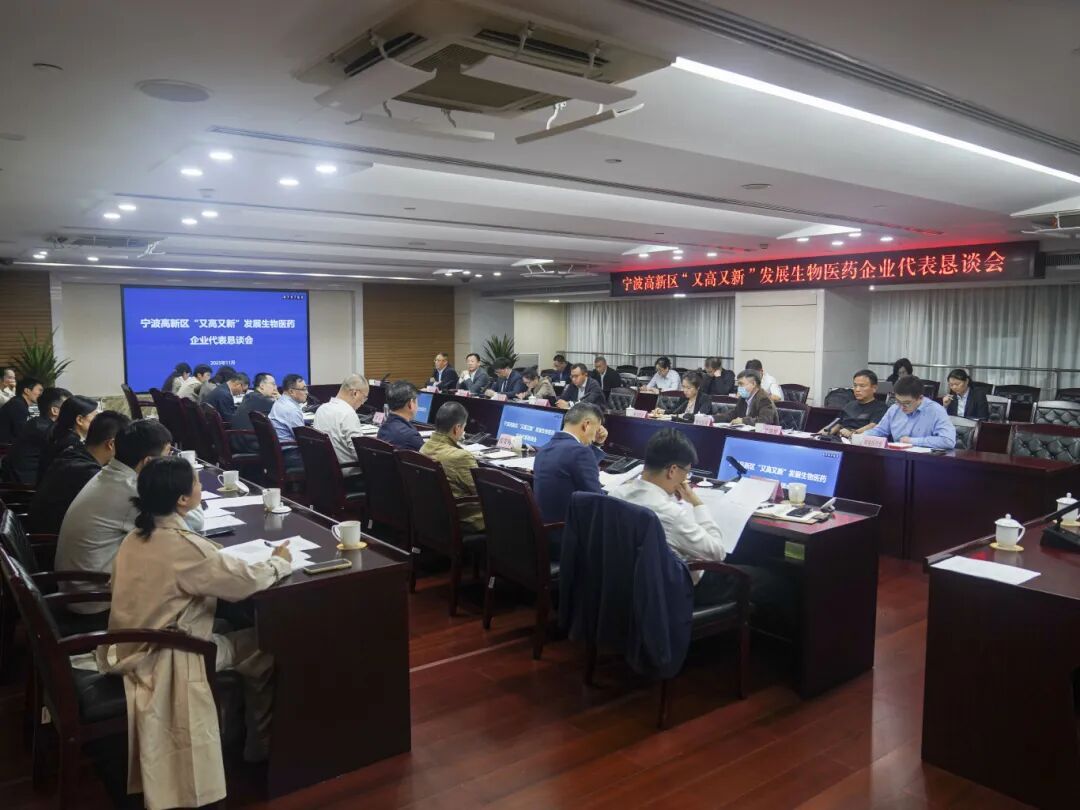 11月7日下午,寧波高新區(qū)舉辦“又高又新”發(fā)展生物醫(yī)藥企業(yè)懇談會,寧波高新區(qū)管委會主任、黨工委副書記徐云與11家重點生物醫(yī)藥企業(yè)代表暢所欲言,圍繞深入學(xué)習(xí)貫徹黨的二十屆四中全會精神,深化生命健康產(chǎn)業(yè)建設(shè)、推動產(chǎn)業(yè)更好地服務(wù)民生需求、為生物醫(yī)藥創(chuàng)新提供支撐、助力高新區(qū)高質(zhì)量發(fā)展和爭創(chuàng)世界一流高科技園區(qū)建言獻(xiàn)策。寧波高新區(qū)黨工委領(lǐng)導(dǎo)陳健參加。